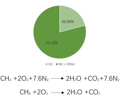 富氧燃燒:氧氣燃燒部分取代空氣燃燒——含氧量超過正??諝獾暮趿浚?0.9%),富氧1% 表示含氧量 21.9%。