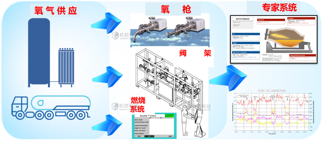 全氧燃燒:爐窯的整個燃燒系統全部是氧氣燃燒。