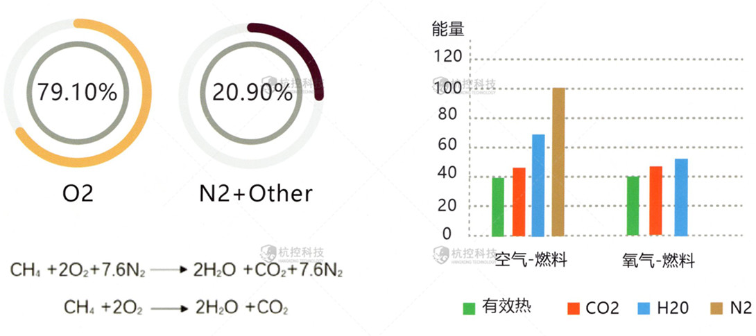 用純氧或部分氧氣代替空氣作為助燃劑,和燃料燃燒,釋放熱量。